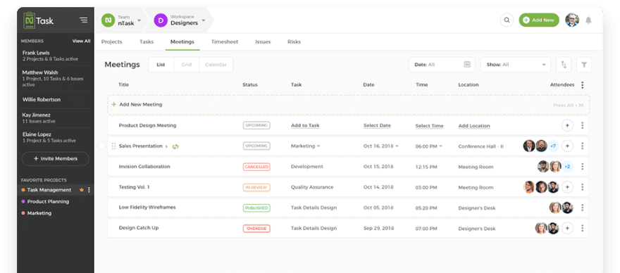 nTask เป็น Scrum Software Tools สำหรับบริหารจัดการโปรเจค ที่มาพร้อมฟีเจอร์ครบถ้วนสำหรับทำให้การทำงานด้วย Scrum นั้นง่ายขึ้น nTask มาพร้อมกับความสามารถต่างๆ เช่น Gantt charts และ Time sheets ที่มีประโยชน์เป็นอย่างมาก สำหรับการติดตามความคืบหน้าของงาน แล้วทำการตัดสินใจเกี่ยวกับขั้นตอนการทำงานต่อไป โดยเช่นเดียวกับ Zoho Sprints, nTask มาพร้อมกับฟีเจอร์สร้างการประชุม ซึ่งเราสามารถตั้งกำหนดการเวลาในการประชุมได้อย่างมีประสิทธิภาพ