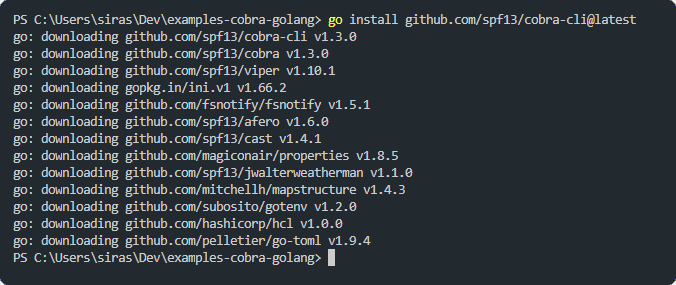 ติดตั้ง Cobra-CLI ด้วยคำสั่ง go install github.com/spf13/cobra-cli@latest