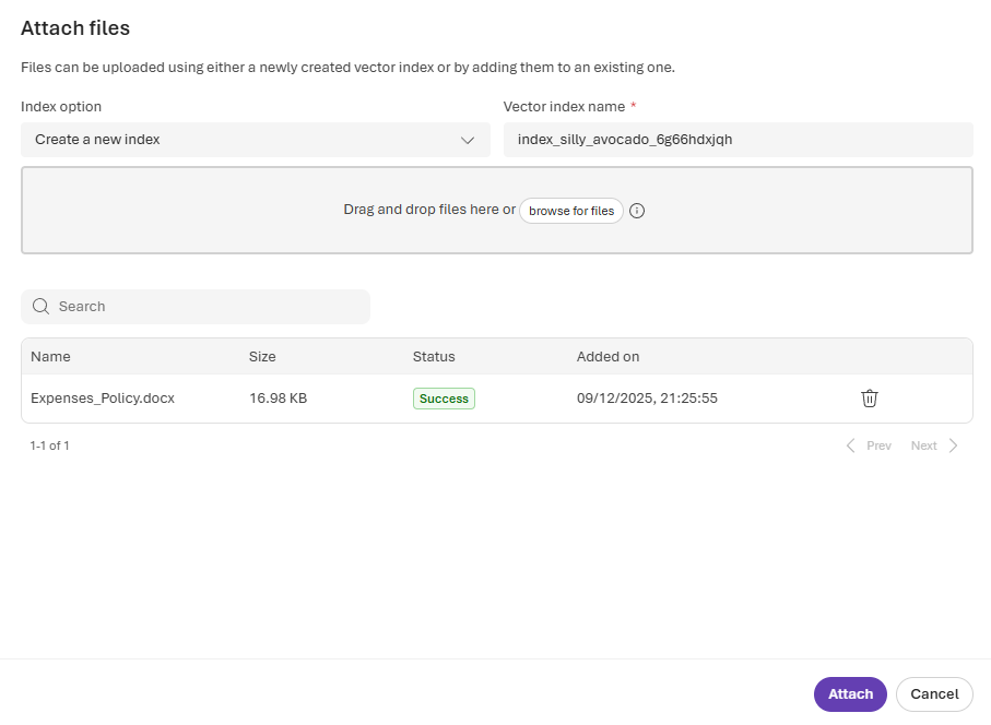 แล้วทำการกด Attach ได้เลย หลังจากนั้นตรวจสอบว่ามี File search (1 file) อยู่ในระบบ