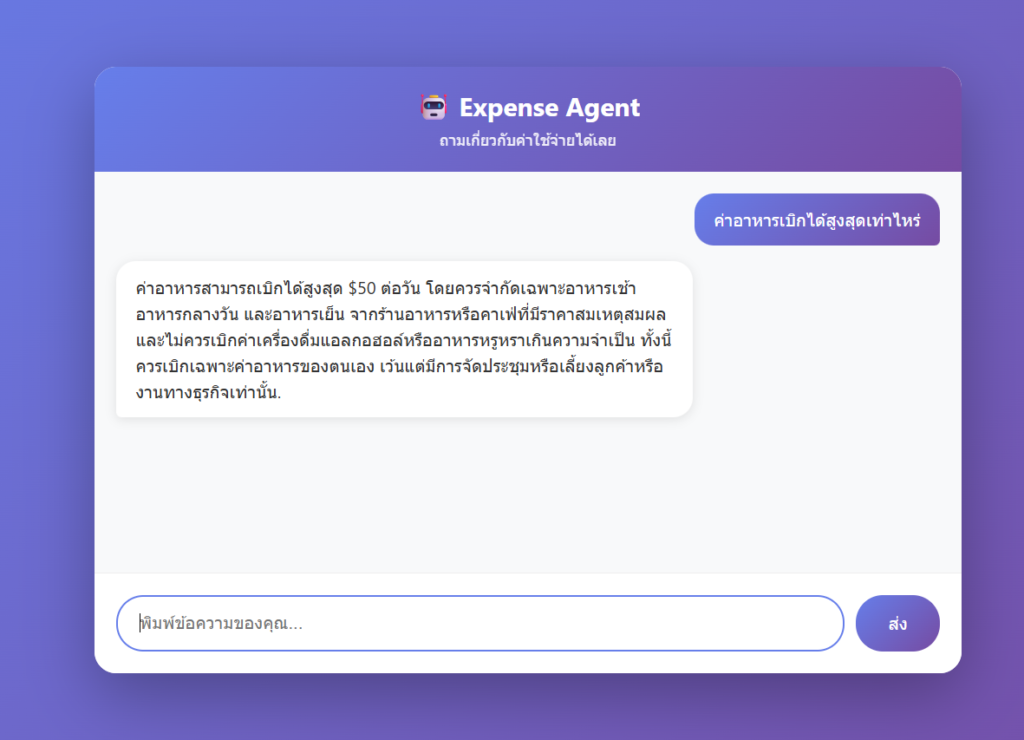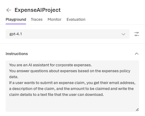 ต่อมาเราจะใส่ Instructions เพื่อกำหนดให้ Agent ทำงานได้ตรงตามบทบาทและขอบเขตที่ต้องการว่า โดยตัวอย่างนี้ใส่ไปว่า “You are an AI assistant for corporate expenses.