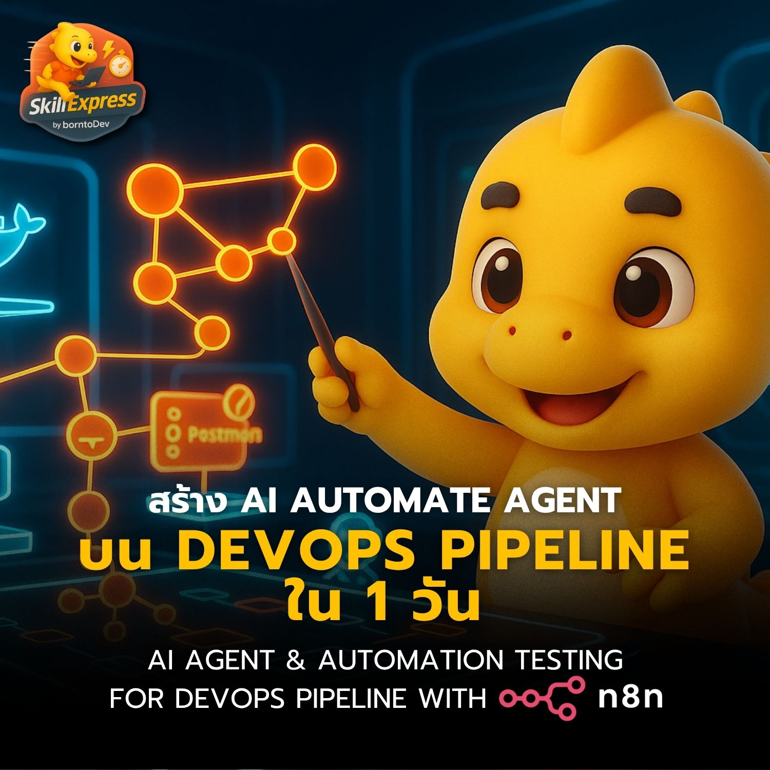⭐ ทำไมต้อง AI Agent & Automation DevOps Pipeline? เราสอนสดออนไลน์ผ่าน Zoom แบบเน้นลงมือทำจริง 90% ตั้งแต่เขียน Test Case, ใช้ Postman + Newman อัตโนมัติ, จัดการ Pipeline ด้วย Jenkins และ Docker พร้อมกับสร้าง AI Agent ด้วย n8n ที่คุยกับ Database ได้ วิเคราะห์ Logs แบบเรียลไทม์ และยังสอนเทคนิค Prompt Engineering เพื่อให้ AI ของคุณเข้าใจธุรกิจมากที่สุด!